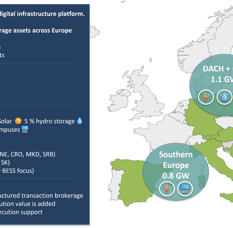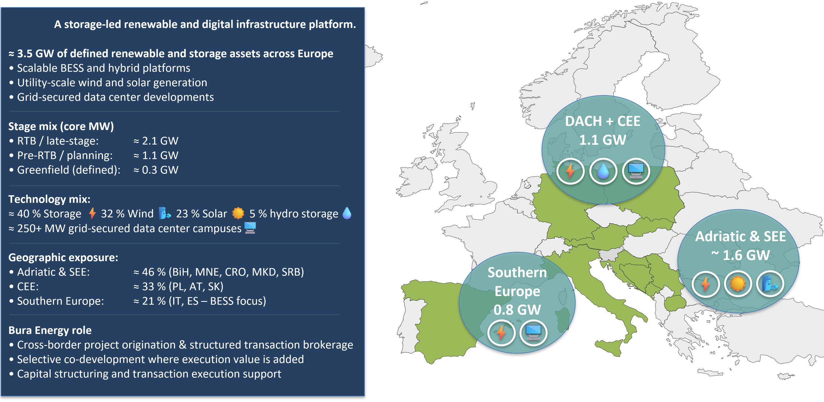 We develop industrial-scale solar, wind energy and BESS projects across the Adriatic region. Focus is on 100 MW and larger sites.
